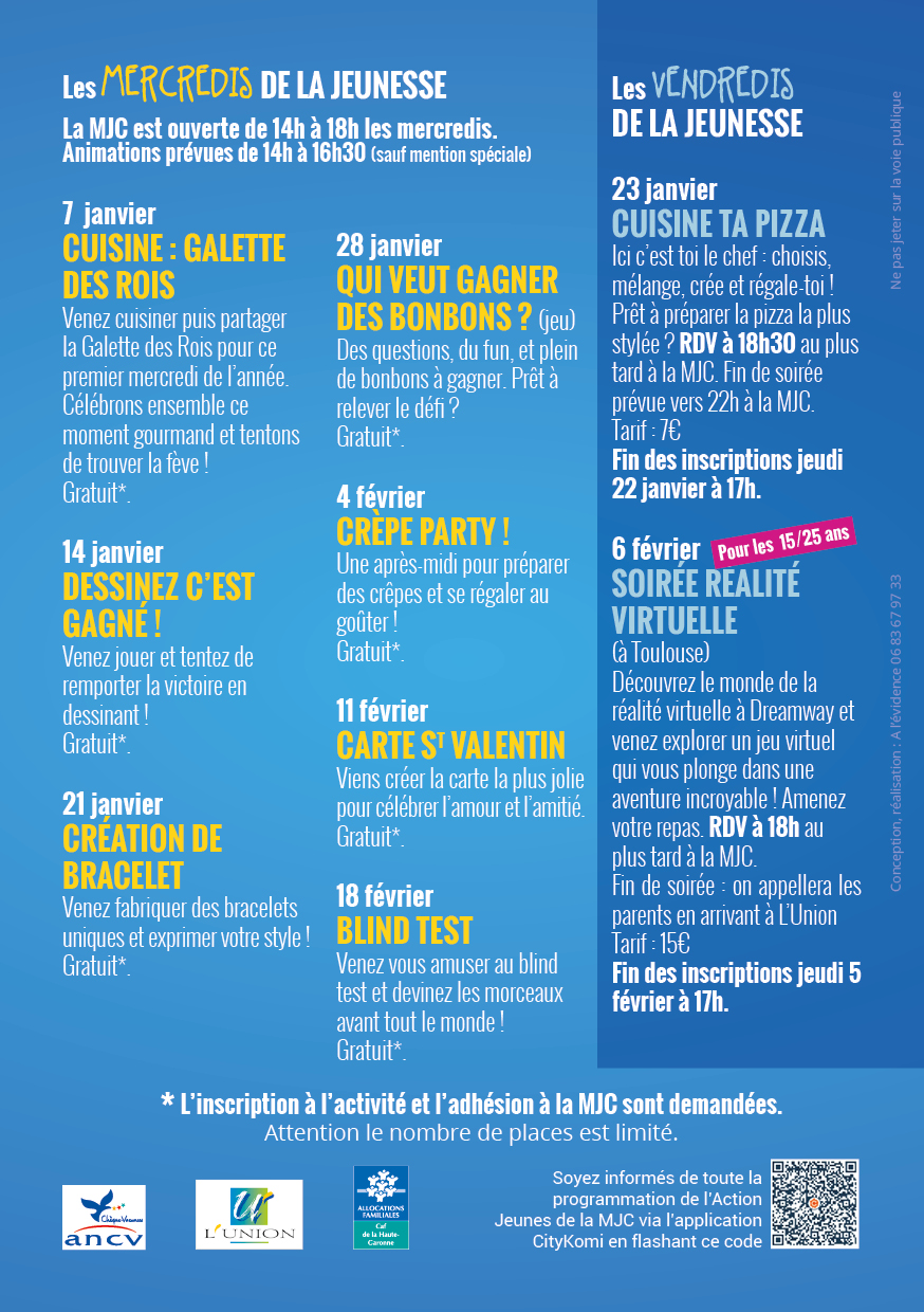 Merci de rentrer en contact avec la MJC pour toute inscription.